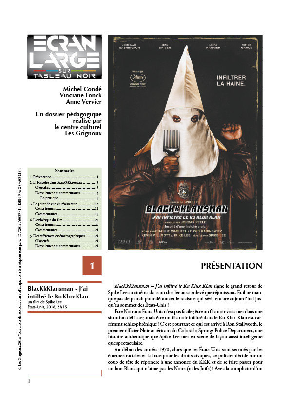 On retrouve par ailleurs chez Spike Lee le même talent des grands réalisateurs américains de la génération de Martin Scorsese ou Brian DePalma à raconter des histoires de façon dynamique et spectaculaire : virtuosité de la caméra, habileté du montage et, pour ne rien gâcher, une bonne dose d’humour font de BlacKkKlansman. J’ai infiltré le Ku Klux Klan une réussite cinématographique qui séduira le large public des adolescents et adolescentes.