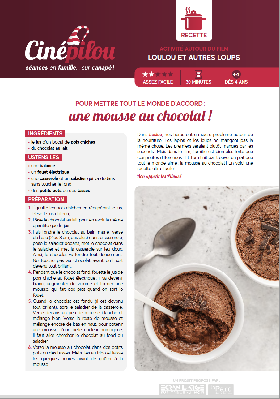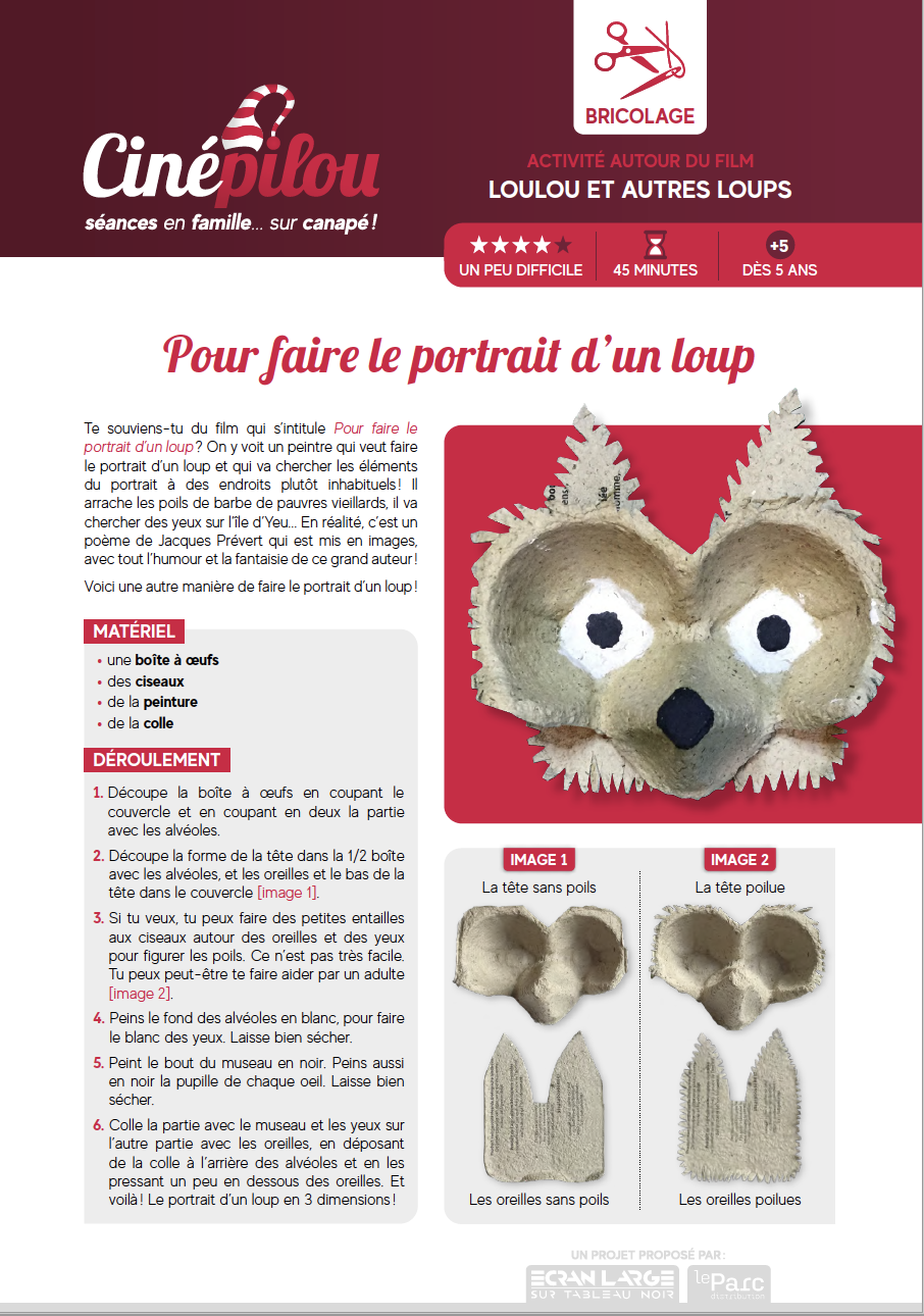 Merci d'avoir acheté votre place pour une séance Cinépilou ! Voici les liens qui vous permettront de faire des activités avec vos enfants durant le week-end, après avoir vu le film...