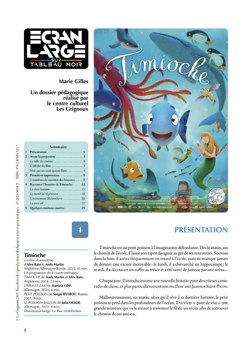 L'équipe pédagogique d'Ecran large sur tableau noir a réalisé un grand nombre de dossiers pédagogiques sur des films récents ou plus anciens. Le catalogue complet de ces dossiers peut être consulté sur le site internet Les Grignoux.